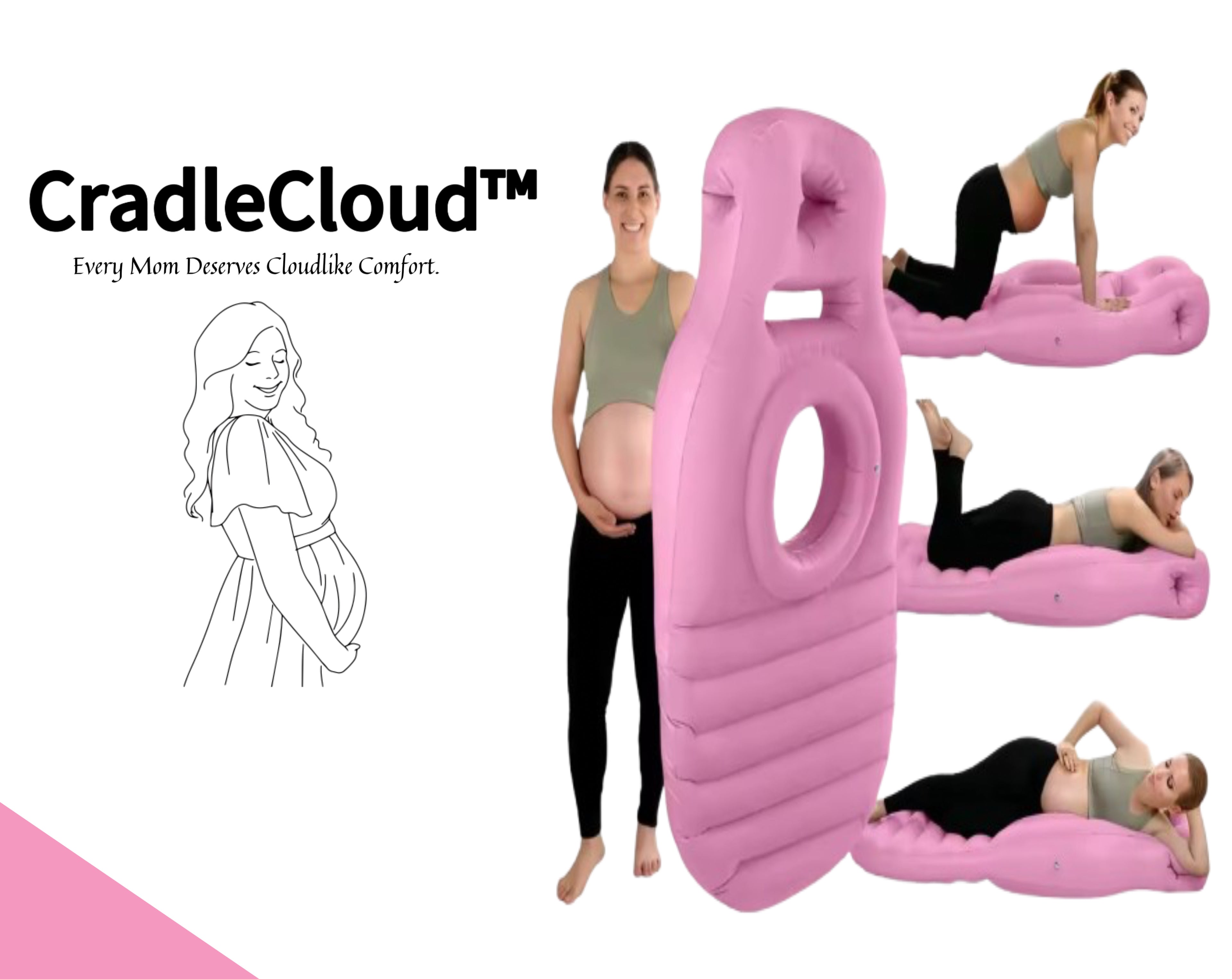 CradleCloud is an inflatable pregnancy pillow with a unique tummy hole, designed to relieve pressure on your bump while supporting your back, hips, and belly. It reduces pain, improves sleep, aids postpartum recovery, and doubles as a versatile lounger — comfort wherever you need it.